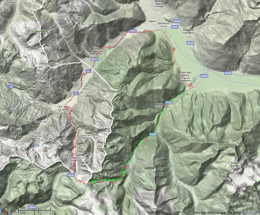 ![]() Near the top of the Stelvio climb ![]() Descent from Stelvio through Val Mustair ![]()