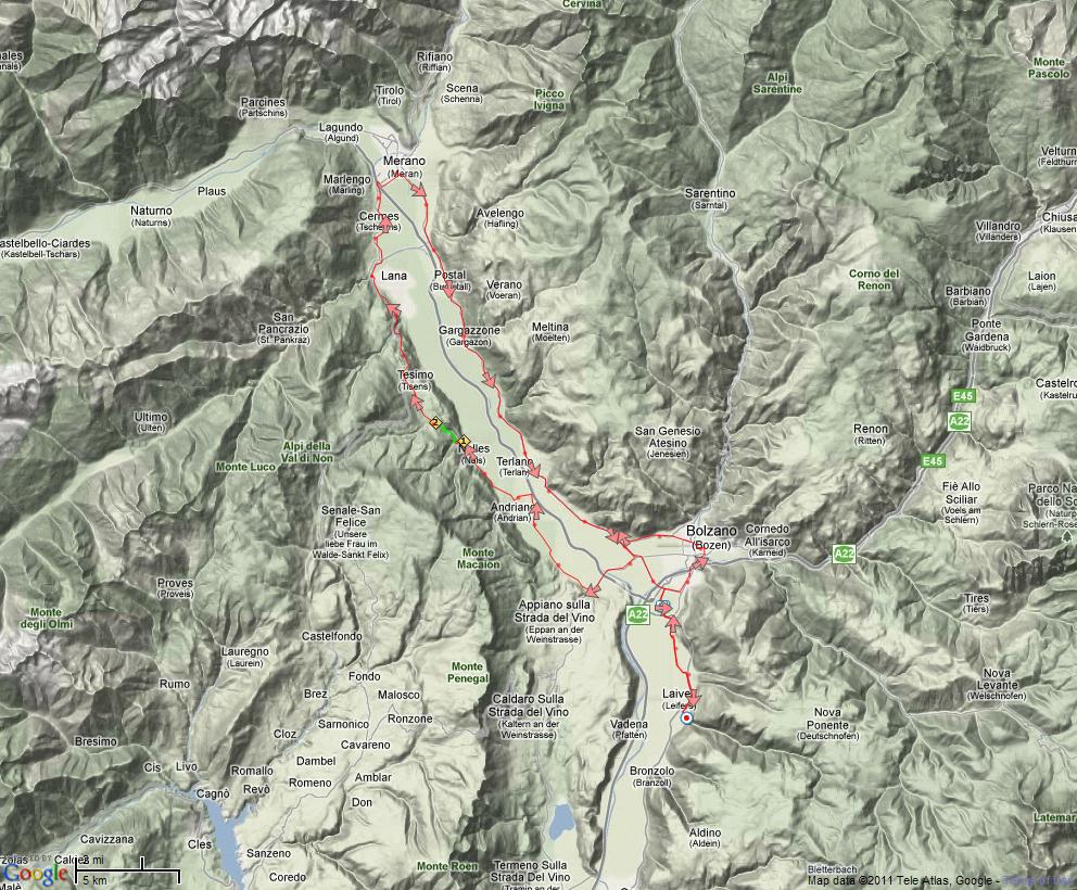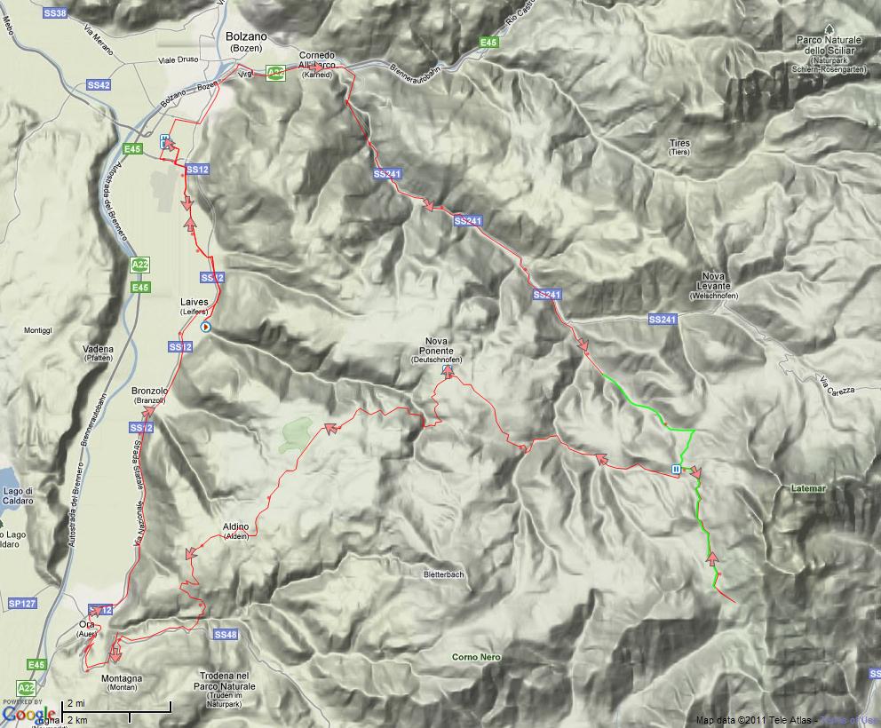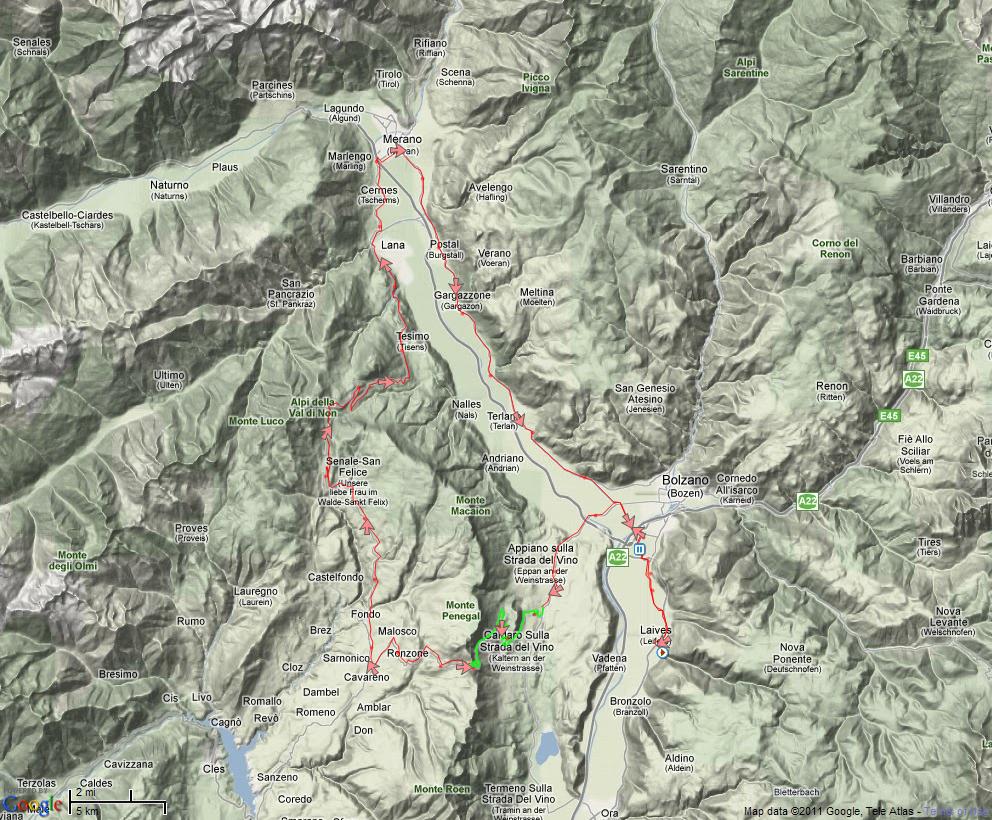 ![]() ![]() Sunday 31. July Time stretch from Kaltern to the Mendelpass. 932 m elevation over ca. 15 km. Beautiful weather! Total cycling distance: 120 km.