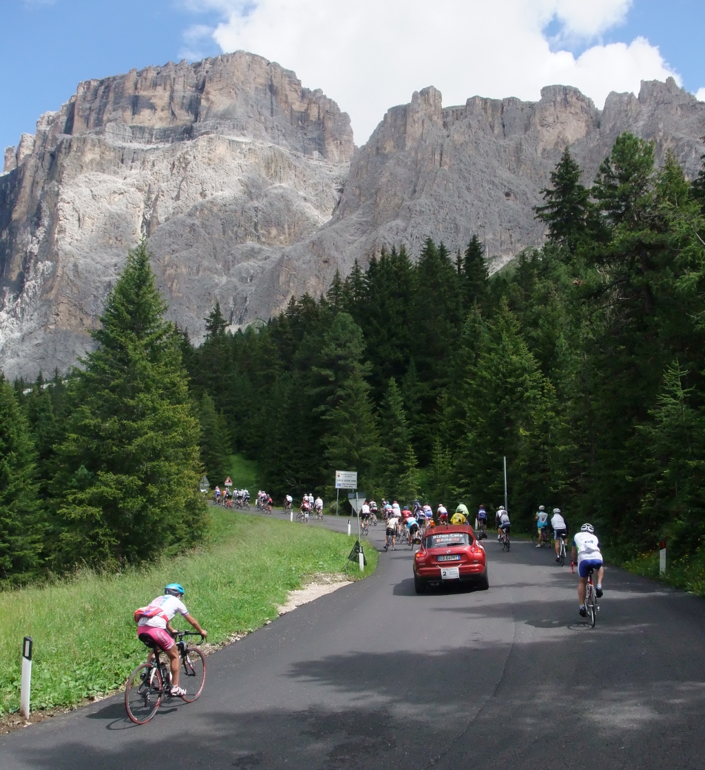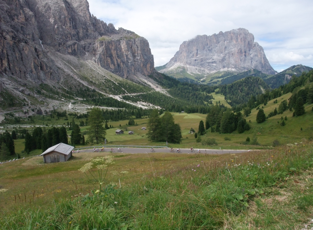Thursday 4. august. The famous Sella-ronde. 170 km and four tops (three of them > 2000 m above sea level). Time Stretch from Arabba to Passo Pordoi (9.3 km, 637 m climb). ![]() Short rest in Selva val Gardena